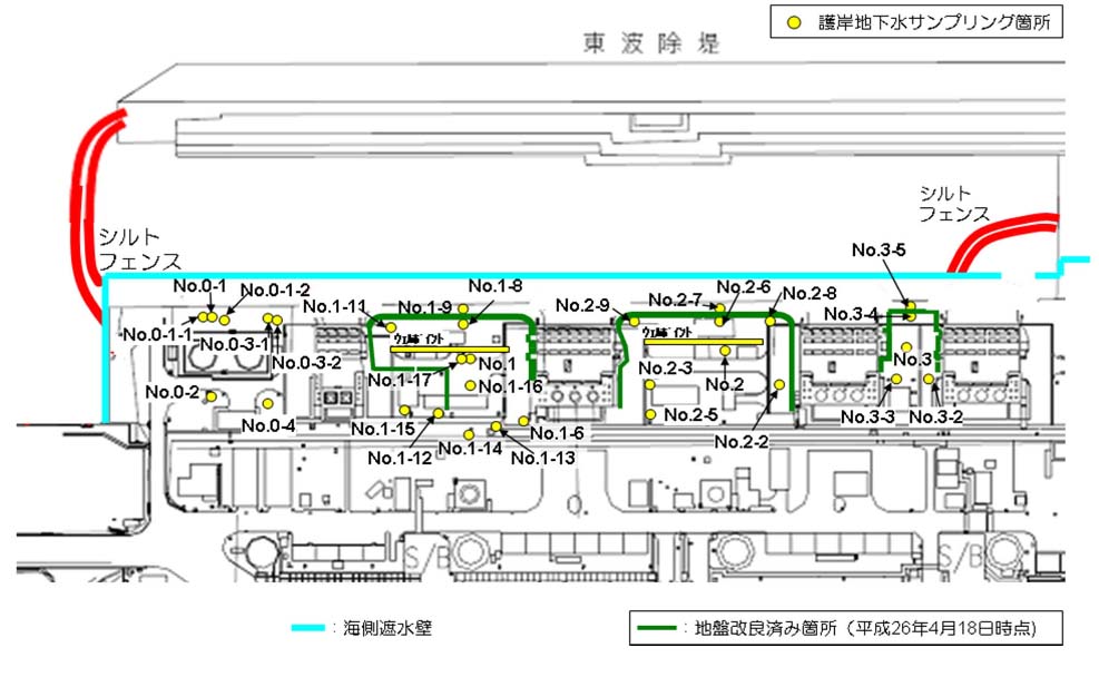 Il y a 10 puits d’observation sur le côté mer du réacteur 2 mais Tepco n’a pas publié les résultats des analyses des 8 autres puits de forage.
