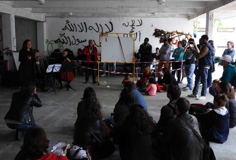 En choisissant de se représenter sous les soubassements de la Maison des Réfugiés, au 12 rue Jean-Quarré du 19ème arrondissement, les Cassandres se sont rendus sur un lieu controversé depuis ces derniers mois, car cet ancien lycée abandonné abrite, dans des conditions précaires, plusieurs centaines de réfugiés Soudanais, Afghans et Nord-Africains.