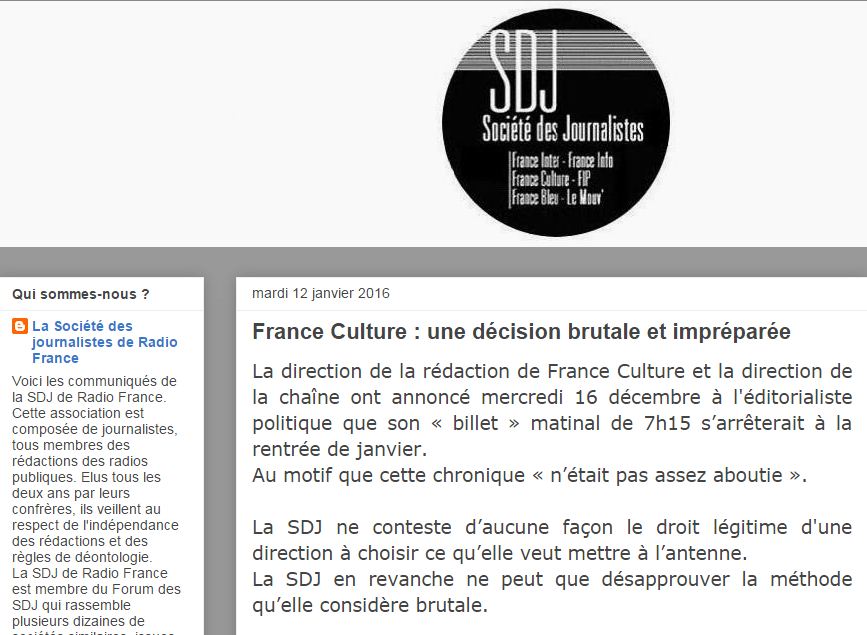 Pour la SDJ, "il y avait d'autres façon de terminer l'année 2015 à la rédaction de France Culture."