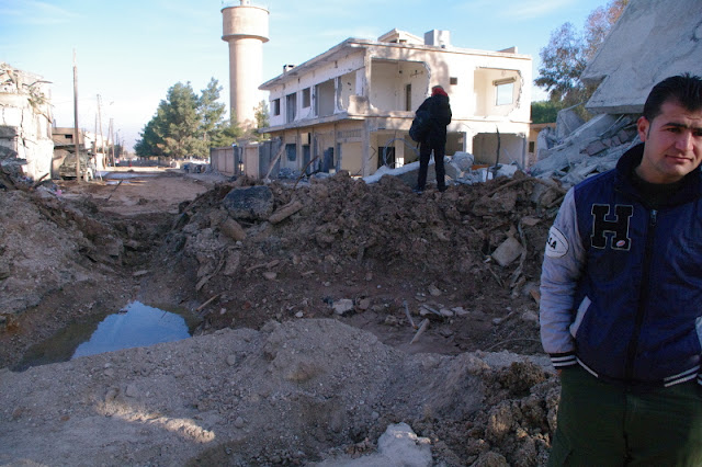 La région fut le théatre de combats acharnés de fin février à fin mai 2015. Par ailleurs, le 10 décembre 2015 la ville fut l'objet d'un triple attentat à la voiture piégée, soit 5 jours avant notre départ pour le Rojava.Nous trouvons donc un chauffeur qui pour 100$ veut bien nous conduire à destination, on en profite pour embarquer un étudiant et on le laisse à Sérékaniyé.