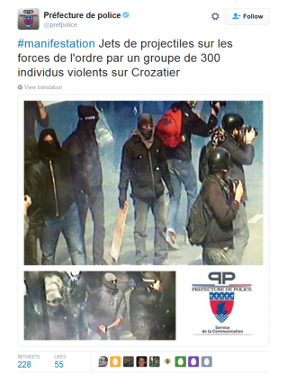Pour l'heure, la réponse des forces de l'ordre est double : officiellement, elle consiste à prouver que les policiers ont été visés en diffusant des photos de personnes cagoulées, projectiles en main.