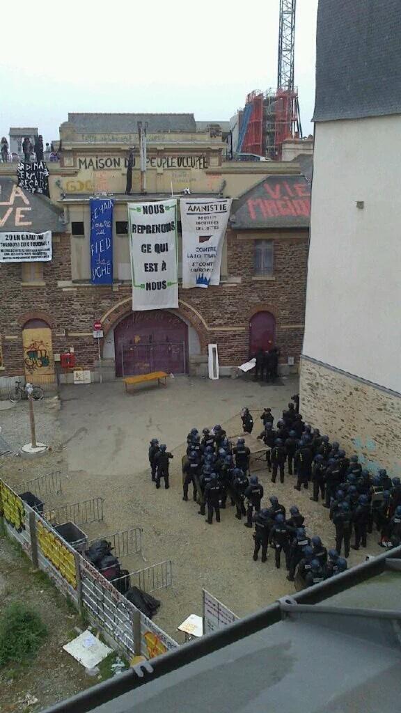 Les médics, la défense collective, les cantines autogérées, certains fonctionnements logistiques au sein de Nuit Debout, les déplacements collectifs en manifestations, la Maison du Peuple à Rennes, les médias libres, les comités d’action qui se réunissent hebdomadairement depuis deux mois, vont, pour moi, pleinement dans ce sens de la réappropriation individuelle de l’action collective. Et cette réappropriation passe par une désappropriation des moyens de domination, de pouvoir, de contrôle, de dépendance au profit de la décision et de l’autonomie collective. Et ça commence tout d’abord par soigner et se soigner, manger, boire et cuisiner collectivement, se cultiver et partager, se protéger mutuellement, agir et se défendre ensembles, s’écouter, s’entendre et se parler, s’avouer et se questionner, mutualiser les ressources, déprivatiser les espaces communs de rencontre et d’organisation.