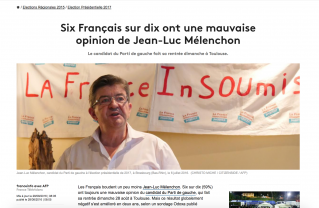 À première vue, c'est une claque pour le fondateur du Parti de gauche. "«Agressif, populiste»... 59% des Français ont une piètre image de Mélenchon", titre un article de l'Express publié ce dimanche 28 août. Le politique n'est pas seulement impopulaire : on nous explique également pourquoi il l'est, à l'aide de deux adjectifs pesants– et de points de suspension qui laissent penser (tremblez, lecteurs) que la liste n'est pas terminée.