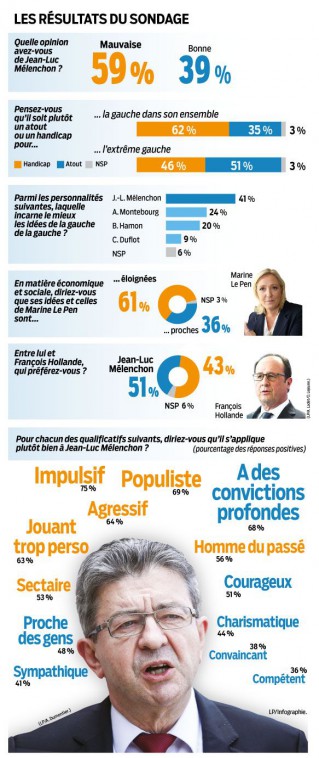 Jamais mieux servi que par lui-même, le cofondateur du Parti de gauche, tout en lançant un sonore "Merci patron" pour rappeler que Le Parisien appartient à Bernard Arnault, a publié sur son blog des visuels mettant en avant les chiffres les plus favorables du sondage.