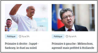 "En deux ans, les opinions positives à son égard ont progressé de 6 points comme si les Français s'étaient faits à l'agressivité du personnage auquel ils accordent malgré tout une crédibilité politique en hausse qui le sort du registre des seconds rôles", peut-on ainsi lire dans Le Parisien. L'agressivité du personnage ? Départie de ses guillemets, elle n'est plus une opinion relatée en tant que telle mais un simple fait rapporté placidement par le journaliste, comme on parlerait de hausse du chômage ou de reprise des combats en Syrie. Un fait tellement indiscutable qu'il est repris en titre, toujours sans guillemets : "Primaire à gauche : Mélenchon agressif mais préféré à Hollande".