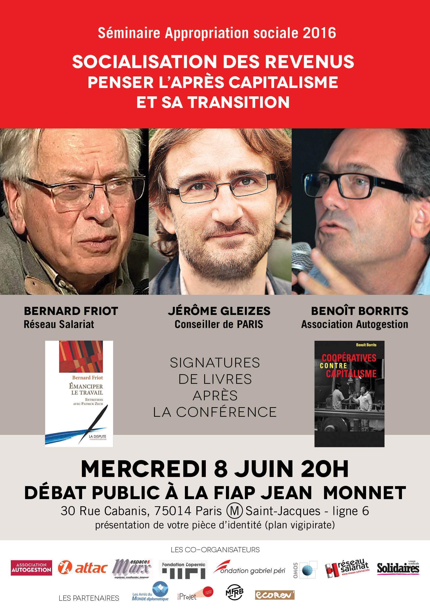 Le mercredi 8 juin à 20h a eu lieu un débat public avec Bernard Friot (Réseau Salariat), Jérôme Gleizes (conseiller de Paris) et Benoît Borrits (Association Autogestion) sur le thème de la socialisation des revenus. Nous publions ici les contributions de chacun des trois intervenants suite à ce débat.