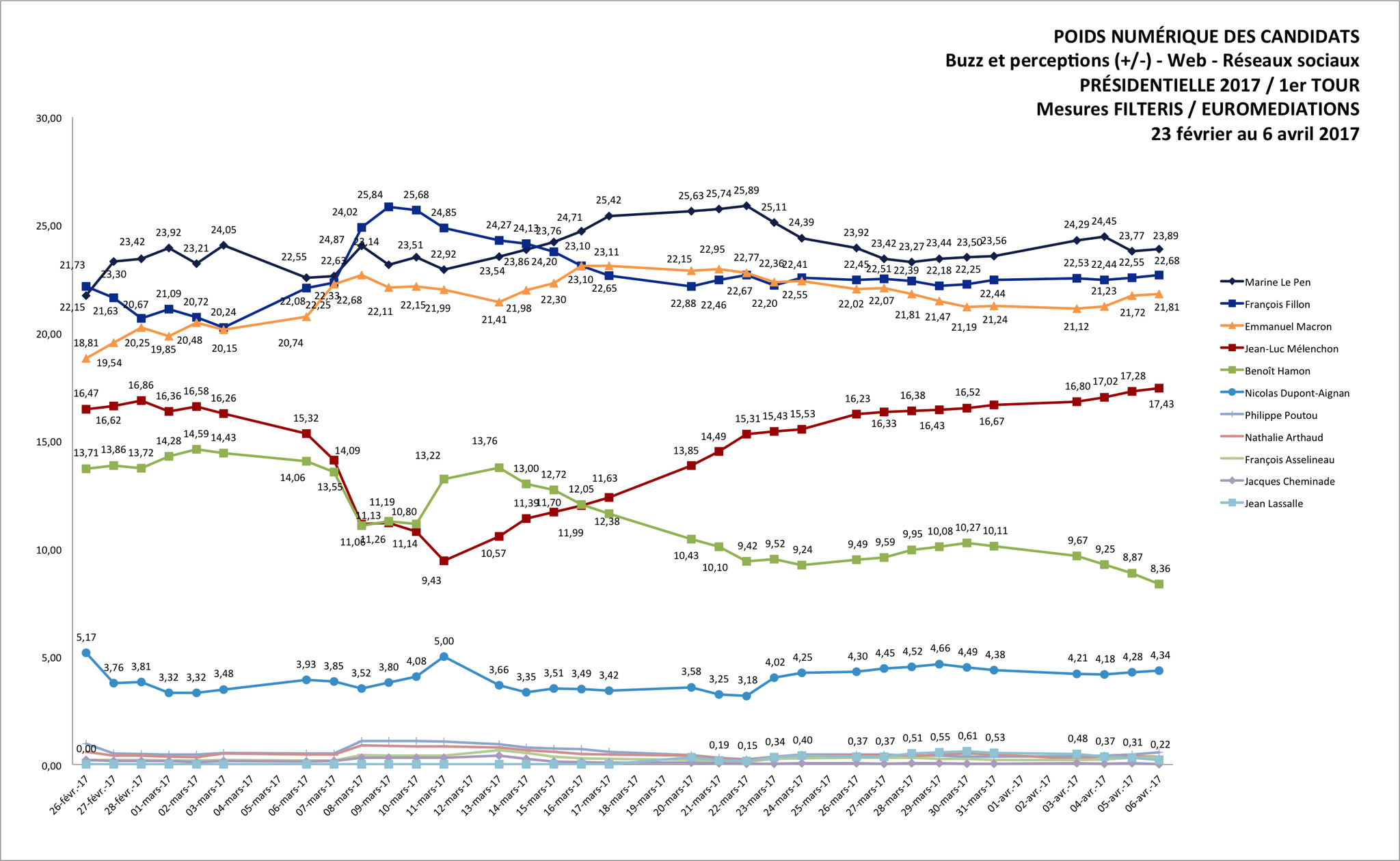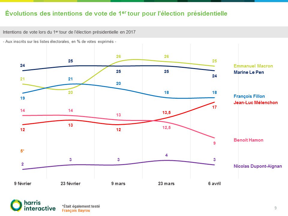 Le spectre d'un duel Mélenchon / Le Pen hante cette campagne présidentielle. Hamon passe sous la barre des 10%.