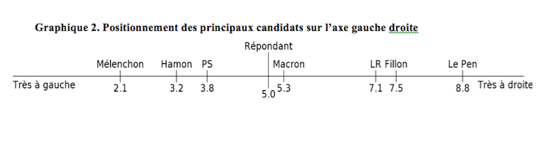 Graphique 2 : positionnement des principaux candidats sur l’axe gauche droite.