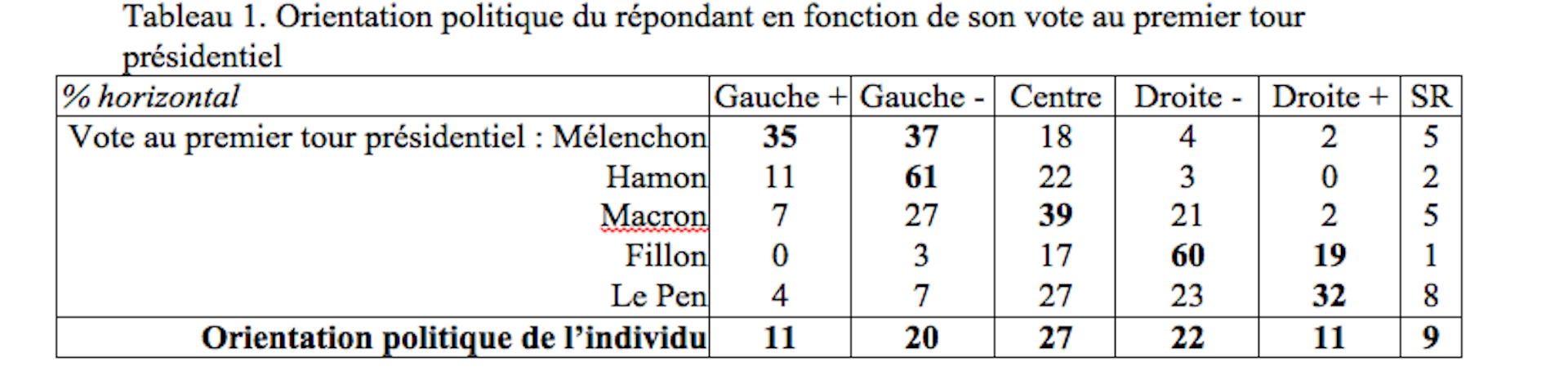 Emmanuel Macron se situe à 5,3, donc très proche du positionnement moyen centriste des individus. Au total, il paraît bien correspondre à ce qu’on appelle traditionnellement « l’électeur médian », celui qui est à la confluence des attentes des citoyens. C’est certainement un élément important de son succès : il correspondait aux attentes des électeurs modérés déçus de la gauche et de la droite, prêts à tenter une hypothèse centriste. Dans un contexte de désaveu des partis de gouvernement, il a pu siphonner les électorats de droite et surtout de gauche modérée au premier tour.