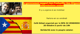 En ce sens, le NPA 34 vous invite à sa réunion publique de demain soir, ouverte à tous et à toutes, pour parler solidarité avec la Catalogne et analyser la portée politique de ce qui s'y passe.