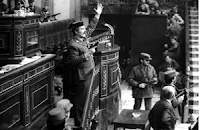 Remarque : les deux personnages portent la toge du juge (à forte ressemblance avec feu le dictateur siégeant dans les nuées qui font l'horizon de l'actuelle démocratie espagnole !), Rajoy compris ! Ils portent également le calot et, sous la toge, l'uniforme militaires !
