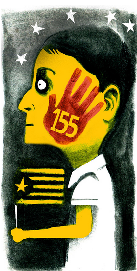 "Le PP, un parti qui représente 8,5% des votes en Catalunya et compte 11 sièges sur 135 au Parlament, gouvernera l'autonomie catalane. Et il le fera grâce à l'appui du PSOE, soit 12,7% des voix et 16 sièges, et de Ciudadanos, 17,9% et 25 sièges. En résumé nous avons 39,1% des voix et 52 sièges contre le total Junts pel Sí et la CUP qui représentent 47,8% des voix et comptent 72 sièges." et qui, majoritaires, ont fait le choix du référendum d'autodétermination. Tiré de El 155 y el sentido común de época: Carl Schmitt va ganando a Antonio Gramsci