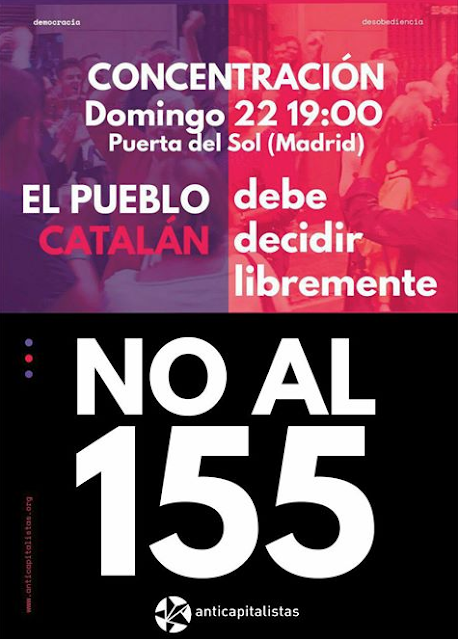 (1) José Manuel Maza, mais aussi le ministre de la justice, ont subi les foudres des député-es pour avoir interféré dans les procédures engagées, pour corruption, à l'encontre de personnalités du Parti Populaire, le parti gouvernemental. Très significativement, quant à l'argument de "la démocratie" et du respect du droit utilisé par ce gouvernement contre la Généralité, ces deux pièces maîtresses de la "Justice" (on nous pardonnera de mettre des guillemets) sévissent toujours malgré la récusation qui leur a été infligée par 207 voix contre 134 (lire ici en espagnol). Et c'est l'un d'eux, le procureur, qui se charge d'inciter, au nom de l'Etat, les juges à appliquer strictement la ... loi en Catalogne, en particulier en ordonnant l'arrestation de Carles Puigdemont et, tant qu'à y être, de tout le Govern ! (lire ici).
