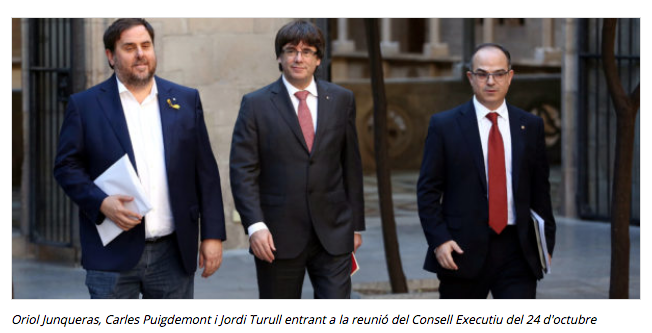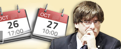 Par conséquent, Junts pel Sí prévoit de lever la suspension des effets de la Déclaration d’Indépendance en séance plénière, qui débutera jeudi [26 octobre] et se terminera vendredi, comme une réponse à l’article 155 et à la volonté du gouvernement espagnol de liquider l’autogouvernement de Catalogne.