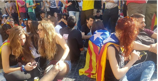 Puigdemont parlait, les étudiant-es s'étaient rassemblés devant le palais gouvernemental