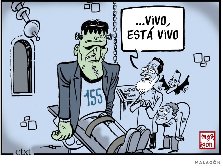 Depuis la crise économique et sociale de 2008 et la révolte indignée qu’elle a suscitée, le régime de 78 (1978 : référendum constitutionnel instaurant la « démocratie monarchique »), ébranlé dans ses fondements et décrédibilisé, d’une part, par une corruption exponentielle de ses élites politiques et économiques et, d’autre part, par les mesures d’austérité capitalistes imposées à la population, a basculé dans une fuite en avant répressive dont témoignent la « loi bâillon » de 2015 et aujourd‘hui les mesures prises contre la Catalogne. L’utilisation, contre les dirigeants de la Généralité, du tribunal de l’Audiencia Nacional, successeur direct du Tribunal d’Ordre Public franquiste et dénoncé par nombre de constitutionnalistes comme une aberration démocratique, témoigne de façon éclatante des ressorts dictatoriaux, jusque là gardés en réserve, dont se prévaut le régime pour se protéger des résistances qu’il suscite.