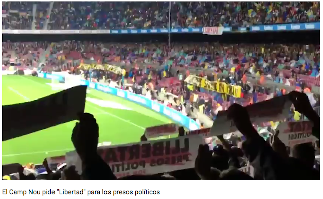 Le club en tant que tel s'est en effet joint à l'action des groupes d'animation de la Crida per la Democràcia (Appel pour la Démocratie) en déployant, sur l'un des côtés du stade, une énorme senyera, le drapeau catalan, accompagné de deux pancartes portant un seul mot, en catalan et en anglais : «Justícia/Justice». 70 000 affichettes portantl'inscription "Liberté prisonniers politiques" ont été distribuées sous la bienveillance du club qui a permis qu'elles soient introduites dans le stade. Deux autres pancartes,énormes, en anglais s'adressaient à l'Europe : «Free all political prisoners» et «Europe shame on you» (Europe, honte à vous).