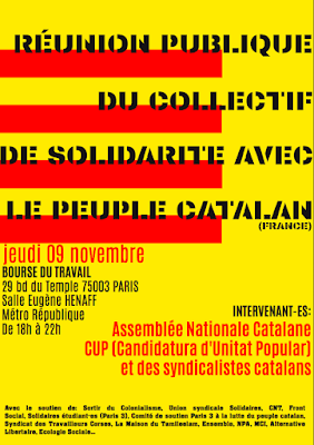 Catalunya. Réunion publique de Paris jeudi 9 novembre.