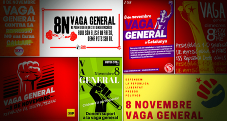 Bien que les syndicats majoritaires, les Commissions Ouvrières et l'UGT, aient à nouveau refusé de se joindre à l'appel à la grève générale del'Intersindical-CSC, affaiblissant son impact dans l'industrie où elles pèsent, et que la première ait clairement exprimé qu'il revenait aux syndicats majoritaires d'user, éventuellement (très éventuellement ajouterons-nous), d'un tel mode d'action, les soutiens à l'initiative se sont multipliésdu côté de diverses fédérations syndicales de laCGT [libertaire], la COS [syndicat d'"alternative"]ou encore la CNT, des Agricultors i Ramaders[agriculteurs et éleveurs] de Catalunya (JARC), els escoltes [scouts], els esplais [associations d'animation pour la jeunesse], els castellers[associations des "châteaux" humains de tradition catalane], el Consell Nacional de la Joventut de Catalunya (CNJC), Lafede.cat [Association pour la Justice Globale], Ecologistes en Acció, la Federació d’Associacions de Mares i Pares d’Alumnes de Catalunya (FaPaC) [parents d'élèves], l’Associació d’Escriptors en Llengua Catalana[écrivains en langue catalane], el Ciemen [pour la défense des minorités ethniques et les nations] o la Plataforma Pro Seleccions Catalanes [pour la reconnaissance internationale des sélections sportives catalanes].
