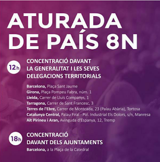 Le Bureau pour la Démocratie (Mesa per la Democràcia), soutenu par l'ANC et l'Omnium, penchait pour appeler à faire grève, malgré les pressions des Commissions Ouvrières, à l'unisson de la patronale Pimec, pour l'en dissuader au nom de son droit de veto. Mais il y a renoncé au profit d'un appel àdes rassemblements en journée devant le siège des Délégations du Gouvernement à Girona, Lleida, Tarragone, Tremp, Tortosa, Manresa et sur la Plaça de Sant Jaume de Barcelone. A 18h ce sera devant les mairies et sur la place de la Cathédrale de Barcelone.
