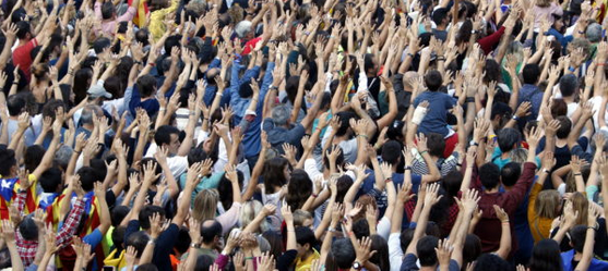 Les Catalans ont décidé que nous jouerons le jeu de la vie. La lutte pour nos droits – du travail, civils et démocratiques – est un jeu auquel nous ne renoncerons jamais. Comme nous n’avons pas renoncé à la défense de notre droit à l’autodétermination en 1976 avec la Marche pour la Liberté, comme les femmes du quartier de Pomar de Badalona n’ont pas renoncé à se battre pour les transports publics en 1985, ni les insoumis en la lutte pour la paix, ni la Plate-Forme de Défense de l’Èbre, ni la PAH [Plate-Forme des Victimes des Hypothèques], ni tant d’autres, car nous sommes un pays de luttes partagées.