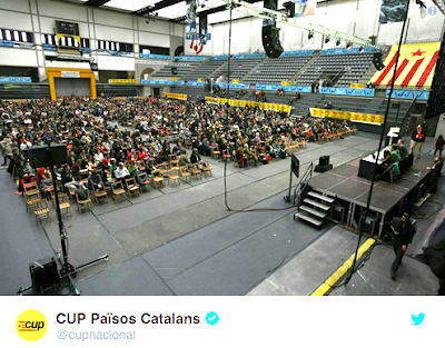 L'assemblée extraordinaire des militant-es des anticapitalistes de la CUP (1200 inscrit-es sur les 4000 qu'elle compte) et de la Crida Constituent (L'Appel Constituant, une organisation regroupant un ensemble d'associations et de partis se reconnaissant globalement dans le programme de la CUP) qui s'est tenue aujourd'hui a décidé à 91,63% de se présenter aux élections du 21 décembre bien qu'elles soient taxées, à juste titre, d'être illégitimes.