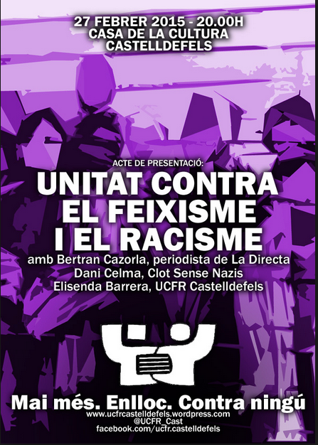 L’UCFR chapeaute des dizaines d’organisations antifascistes et antiracistes catalanes. Elle coordonne les actions de terrain et les vastes rassemblements de rue pour l’accueil des réfugiés et contre l’islamophobie. Elle a mobilisée la population après les attentats d’août dernier sous le mot d’ordre « Vos politiques, nos morts ! Convivialité dans la diversité ! ». Dans un communiqué daté du 12 novembre, elle a enregistré et rendu public le divorce que les dirigeants « socialistes » du PSC, partie prenante jusqu’à présent de l’UCFR,