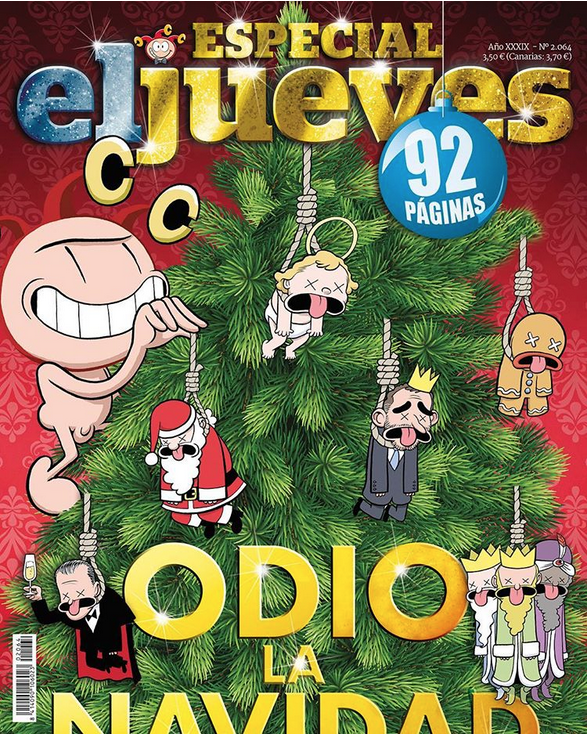 Le contentieux avec la monarchie est une constante de cette revue puisque l'an passé, lors des fêtes de Noël, le numéro spécial consacré à la haine de ces fêtes, s'ouvrait par une couverture où l'on voyait le désormais roi accroché, (sus)pendu, en déco d'un sapin.