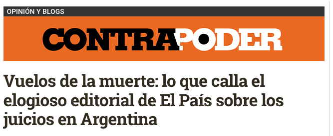 Des occasions de mener une autre politique sur le sujet, il n'en a pas manqué mais pourtant il est aujourd'hui impossible en Espagne, non seulement de juger des crimes contre l'humanité commis ailleurs mais, aussi et surtout, ses propres crimes, ceux commis ici. Il est temps que cette admiration pour l'Argentine ouvre la voie par où l'Espagne puisse reconnaître son passé et mettre en oeuvre un acte de justice qui est toujours en attente d'être réalisé. Ne pas s'atteler à cette tâche et maintenir un positionnement de refus de savoir, ne pas vouloir reconnaître, rendra impossible la construction d'un pays où cette admiration portée au-delà de l'Atlantique rejaillisse sur chacun des Espagnols" Lire ici