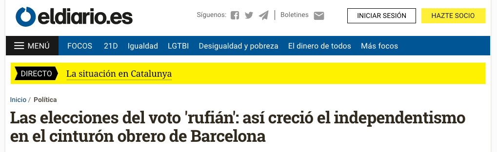 Traduction de Las elecciones del voto 'rufián': así creció el independentismo en el cinturón obrero de Barcelona (eldiario.es, 28 12 2017) par Antoine Rabadan
