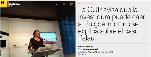 La CUP lance un avertissement : l'investiture de Puigdemont peut échouer s'il ne s'explique pas sur l'affaire du Palau (elnacional.cat, 16 01 2018)
