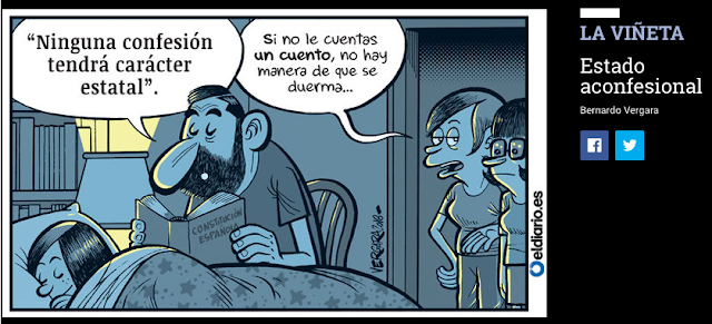 Je rappelle que constitutionnellement l'Etat espagnol est aconfessionnel (article 16 : "Aucune confession n’aura le caractère de religion d’État") ! Alors, au moins par là, retenez ce que signifie l'invocation par le gouvernement espagnol, lancée aux indépendantistes catalans, du respect de la Constitution ! Sans parler du reste...