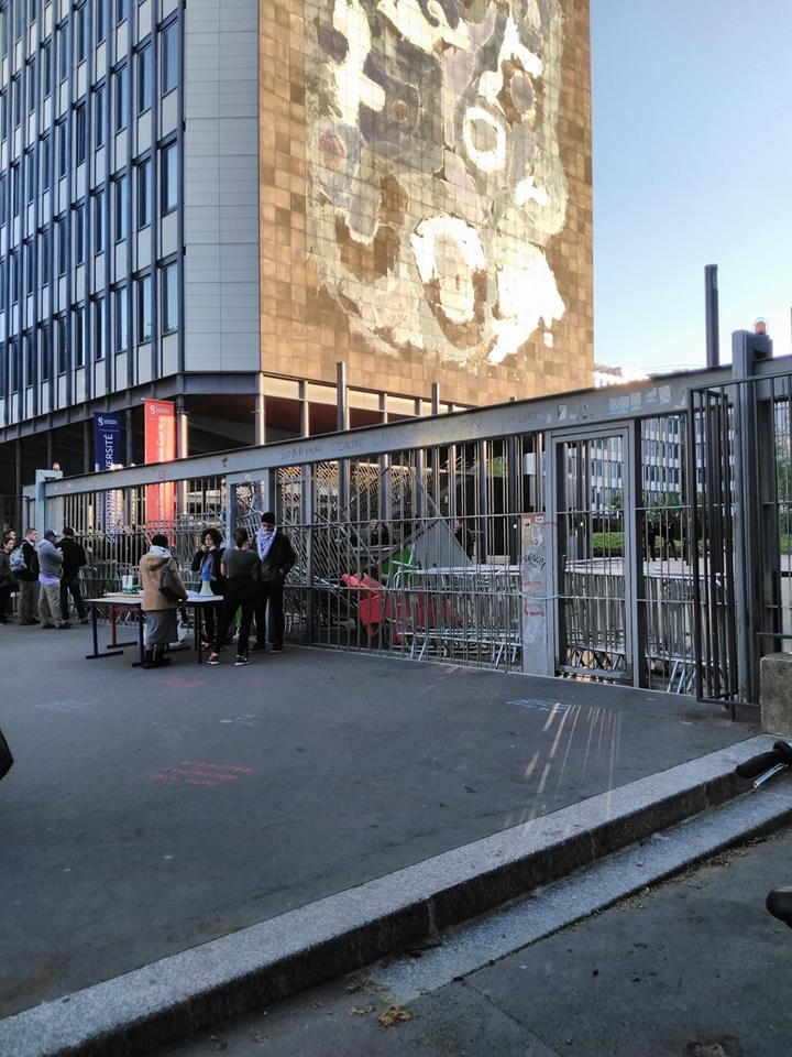 Au lendemain du début de l'occupation de l'ENS, c'est l'immense campus de Jussieu de l'université Pierre et Marie Curie (Sorbonne Université) qui est totalement bloqué, AG ce matin