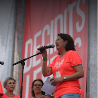 L'affluence XXXL, comme prévu, était là. La revendication de libération des prisonniers politiques (en préventive depuis près d'un an !) et de retour des exilés, l'interpellation des partis indépendantistes, du Govern et du Parlament relayée par les orateurs de l'ANC (Assemblée Nationale Catalane), de l'Òmnium Cultural et des CDR (Comités de Défense de la République), sur l'air du "ne nous décevez pas", "battons-nous ensemble pour la République indépendante", le mandat du référendum du 1er octobre reste d'actualité... traduisaient une impressionnante, mais sereine, détermination...