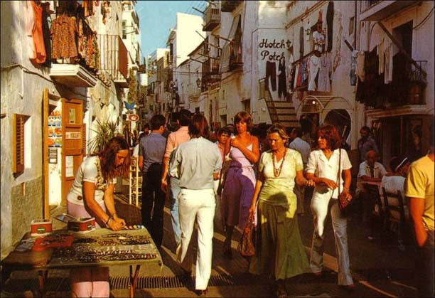Plus tard, victime de son succès, Ibiza devint alors la proie du tourisme de masse mais orienté vers la folklorisation du mouvement hippie qui s'exprima par la commercialisation de ces valeurs : l'amour libre se métamorphosa en tourisme sexuel, l'esprit festif improvisé en boîtes de nuit et de jour gigantesques, les drogues en un commerce lucratif, les fantaisies vestimentaires remplacées par ceux des drag-queens, les écoles internationales destinées aux enfants et aux adolescents fermeront une à une, et les portes ouvertes au monde entier des vieilles masures retapées se transformeront en vastes demeures luxueuses fermées et sécurisées, pour certaines habitées par d'anciens hippies huppés ayant fait fortune...