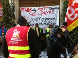 Depuis le 25 septembre 2018, les personnels du Park Hyatt Vendôme, palace bien connus de Paris, sont en grève. Pour obtenir des augmentations de salaires de 3 € de l’heure, pour obtenir l’intégration des personnels sous traitant de la société STN, tout simplement pour la dignité et contre l’exploitation.