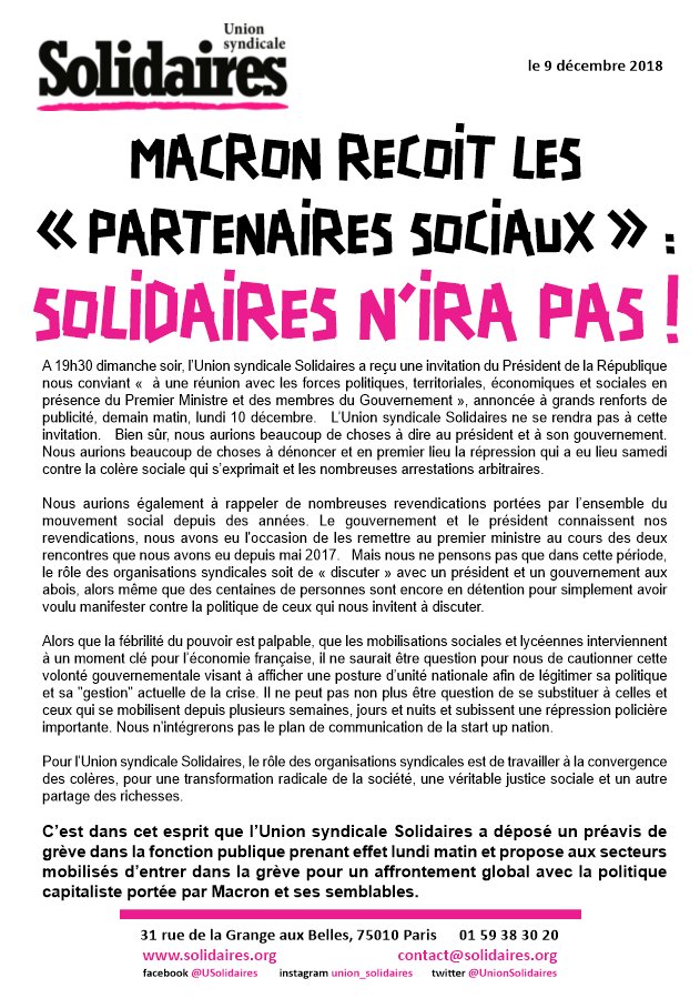 Solidaires refuse de rencontrer Macron