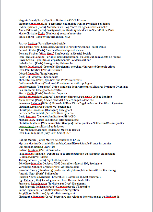 Nous demandons à toutes les personnalités, responsables et citoyens français attachés au respect des droits démocratiques de signer et de faire signer cette déclaration.