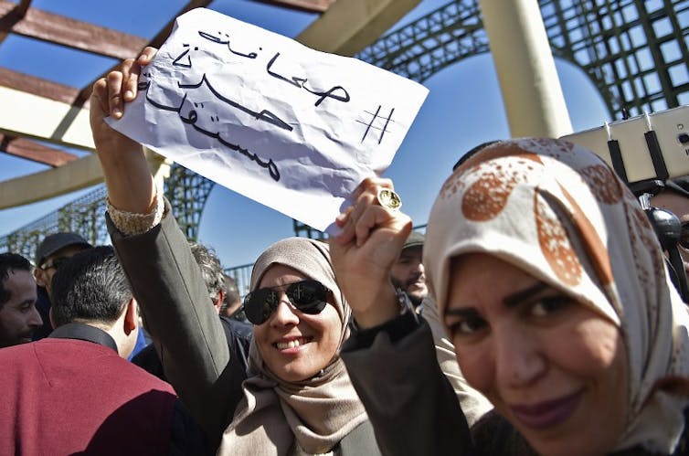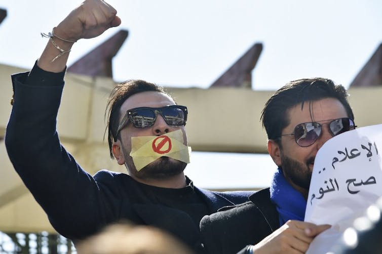 Manifestation de journalistes à Alger, le 28 février, contre la censure. Ryad Kramdi/AFP