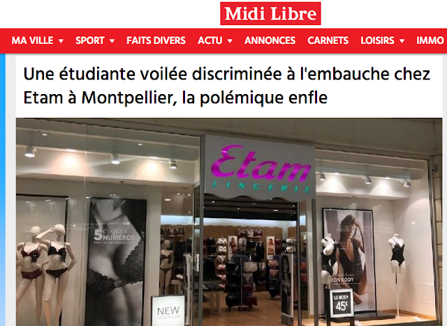 La jeune femme, qui souhaitait déposer sa candidature, mardi 12 mars, dans le magasin de lingerie situé au centre-ville de Montpellier, affirme dans une vidéo diffusée sur Twitter, et partagée plus de 190 000 fois, avoir été discriminée par la responsable. Dans un communiqué pubiée mercredi soir, la direction d'Etam a indiqué avoir "appelé la jeune femme pour s'excuser" et "mis à pied à titre conservatoire" la responsable. Cliquer ici