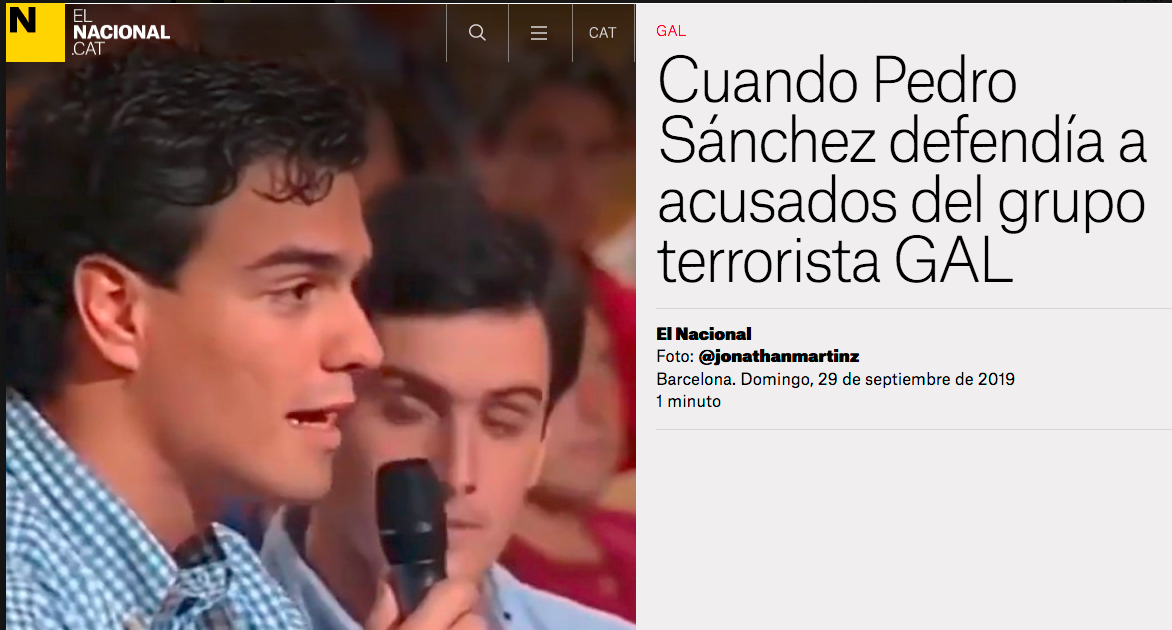 Quand Pedro Sánchez, fringant jeune homme, défendait les membres du gouvernement du PSOE d'alors, celui du mémorable Felipe González, mis en cause dans la poisseuse et surtout criminelle affaire des GAL, Groupes Antiteroristes de Libération, responsables d'avoir assassiné des membres de l'ETA mais aussi, "par erreur", des gens qui n'avaient rien à voir avec le groupe basque.