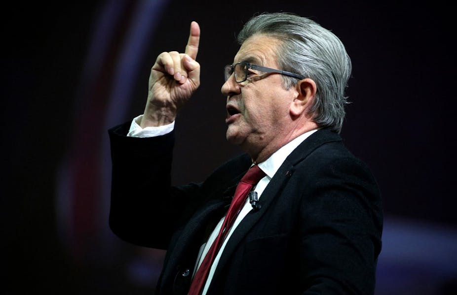 En 2012, il faut le rappeler, Jean-Luc Mélenchon est le candidat d’un cartel de partis politiques – le Front de gauche – réunissant notamment le Parti de gauche (créé en 2009 après que Mélenchon a quitté le PS) et le Parti communiste français. Cinq ans plus tard, le parti de gauche a cédé sa place à un mouvement qui se veut citoyen. Le label partisan est mis à distance en raison de la méfiance qu’il suscite chez les électeurs.